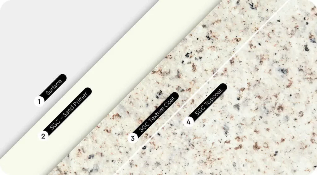 The meticulously formulated coating replicates the intricate natural beauty of granite.