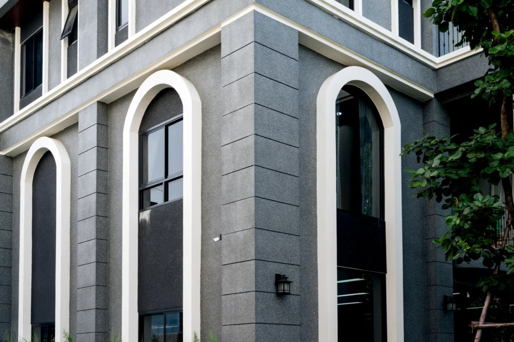 The meticulously formulated coating replicates the intricate natural beauty of granite. Created using cutting-edge technology which enables each capsule to carry its own unique colour, this material also helps to protect the exterior of buildings against wear and tear. Its colors can be customized to suit your design and match existing granite.