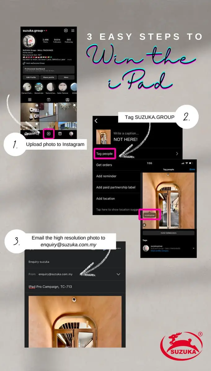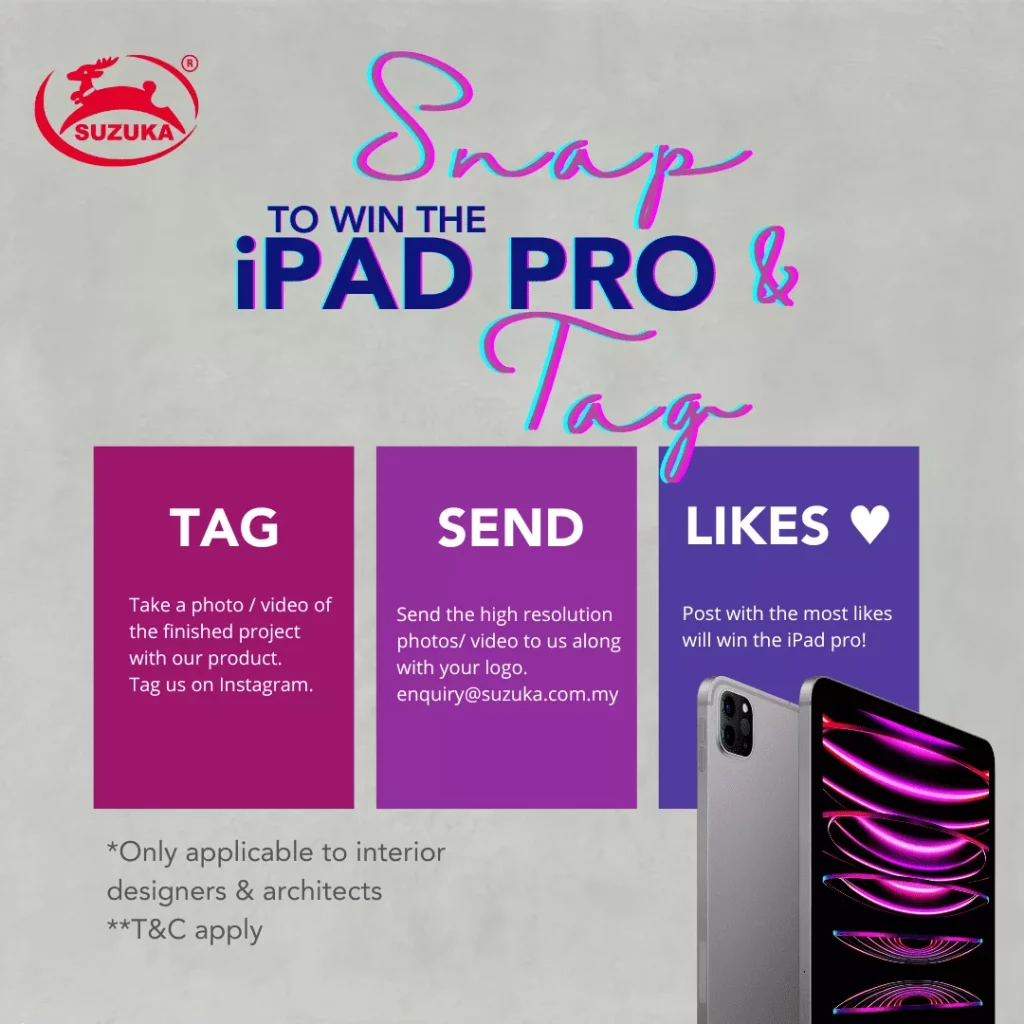 * The entrant also agrees to allow Suzukacoat (M) Sdn Bhd to use their photos for printed collateral, online, in store and across other marketing mediums, at Suzukacoat (M) Sdn Bhd’s sole discretion and at no cost.